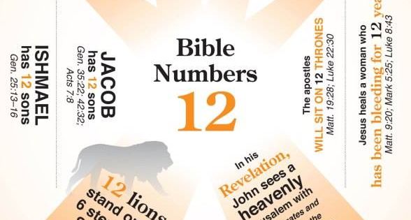 Trong Sách Thánh, con số 12 mang một ý nghĩa biểu tượng vô cùng quan trọng, vì đó là con số ám chỉ: Thứ nhất, 12 chi tộc Israel: Jacob, sau được Chúa đổi tên thành Israel, có 12 con trai mà được coi là các ông tổ và là nền tảng của 12 chi tộc Israel, dân được Thiên Chúa chọn; Thứ hai, 12 tông đồ của Chúa: Đức Giê-su chọn 12 ông tồng đồ để tiếp tục sứ vụ, loan truyền giáo huấn của Người và hình thành nên Hội Thánh Kito giáo thuở sơ khai; Thứ ba, 12 cổng và 12 nền móng trong Sách Khải Huyền: Thành thánh Gierusalem mới có 12 cổng và được xây trên nền tảng 12 nền móng, biểu trưng cho sự hoàn thành và hiệp nhất của dân Thiên Chúa; Thứ tư, một số chỗ khác trong Tin mừng đề cập số 12: 12 thúng bánh vụn, phép lạ chữa lành cho cô bé 12 tuổi, người đàn bà bệnh 12 năm.
